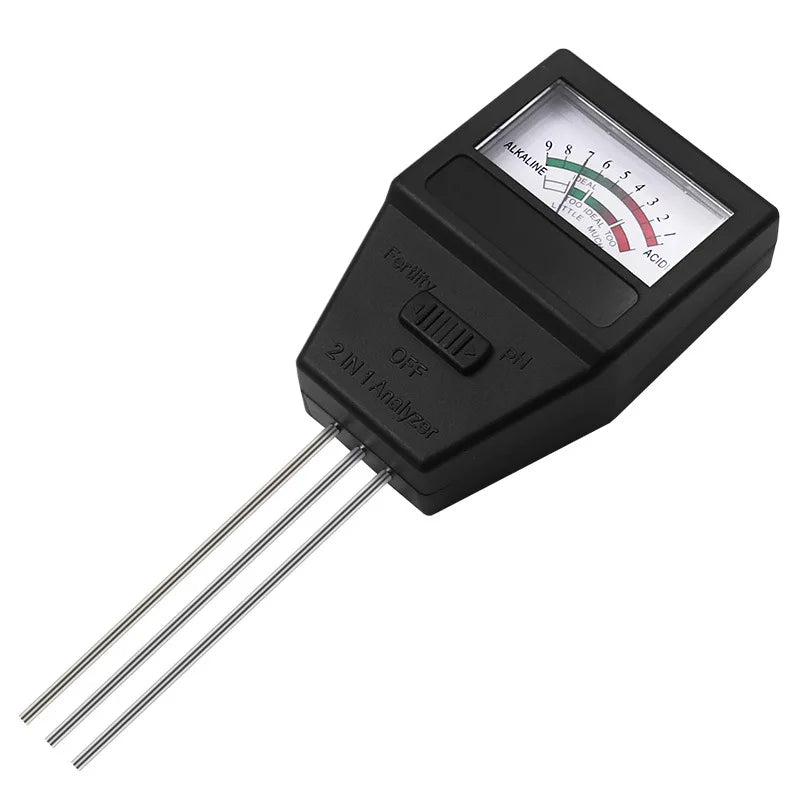 Instantly measures soil pH (acidity) and fertility levels.